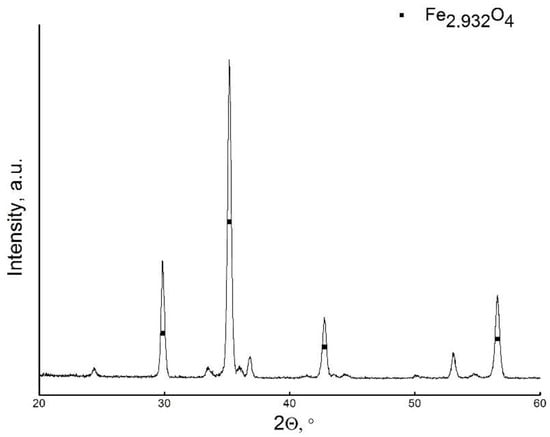 XRD pattern of uncoated rough 316 L stainless steel substrate annealed at 850 °C. Fe2.932O4 is the only dominant phase.