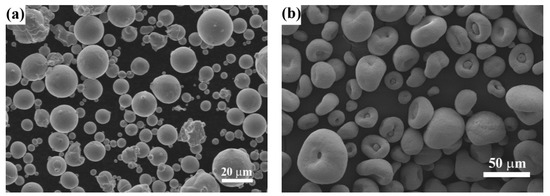 Figure 1. Morphologies of powders: (a) NiCrAlY used in bondcoat; (b) CYSZ used in topcoat.
