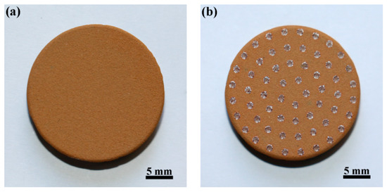 Figure 2. Surface images of specimens: (a) plasma-sprayed specimen; (b) dotted specimen.