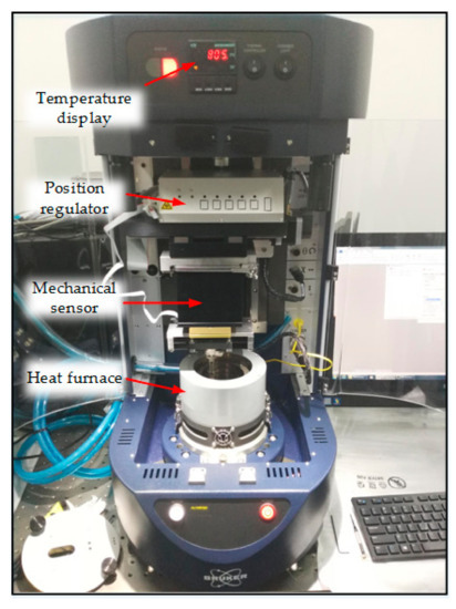Cutting heat generated at tool rake face is mainly affected by the frictional heat at tool-chip interface during metal cutting process. The values of the COF between tool and workpiece material are different at elevated temperature and ambient temperature. Hence, it is necessary to investigate the COF at an elevated temperature. To determine the friction coefficients between cutting tools and H13 hardened steel, friction experiments were conducted on UMT-TriboLab device (Bruker, Billerica, MA, USA). The experimental equipment and experimental conditions are shown in Figure 4.