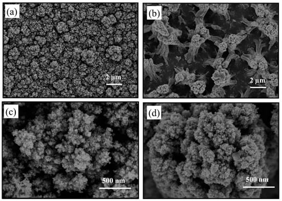 SEM images of (a) and (c) original sample, (b) and (d) plasma treated sample at 80 W.