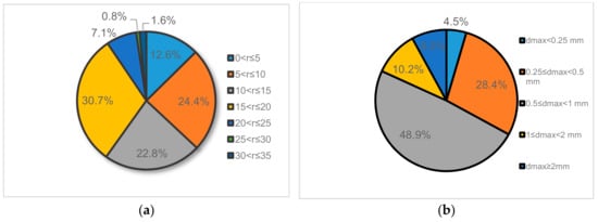 - Almost 50% of the maximum size of the rubber particles used to modify the binder fall in the range of 0.5–1 mm (Figure 5b). A significant percentage can be observed for the range of 0.25–0.5 mm. The percentage of bigger particles is higher than the percentage of smaller particles (dmax < 0.25 mm). This is probably due to the difficulties in producing smaller rubber particles at the industrial level. Smaller particles facilitate degradation into the modified binder, nevertheless, the production of very fine particles is onerous and expensive. Therefore, the research has still focused on the use of bigger particles, eventually with the addition of additives (polymers and nanomaterials) for improving the binder properties [,,]. See also Figure 6.