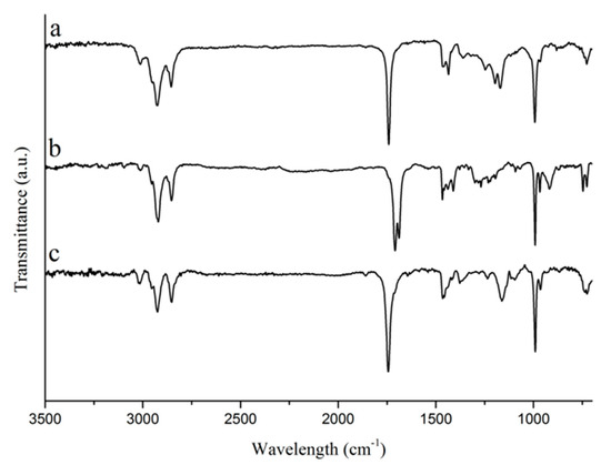 Figure 1), it can be observed that the main structural features of the fatty acid chain in tung oil are unaltered after saponification and transesterification. Signals, such as the strong peak at approximately 1750 cm