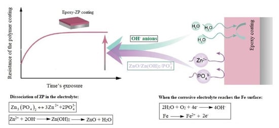 - Naderi, R.; Attar, M.M. The role of zinc aluminum phosphate anticorrosive pigment in protective performance and cathodic disbondment of epoxy coating. Corros. Sci. 2010, 52, 1291–1296. [Google Scholar] [CrossRef]