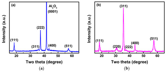 XRD patterns of ZnGa2O4 films grown on (a) sapphire and (b) Si(100) substrates.