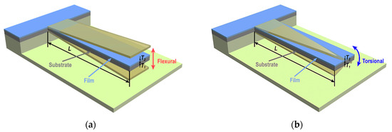 - Green, C.P.; Sader, J.E. Torsional frequency response of cantilever beams immersed in viscous fluids with applications to the atomic force microscope. J. Appl. Phys. 2002, 92, 6262–6274. [Google Scholar] [CrossRef]
