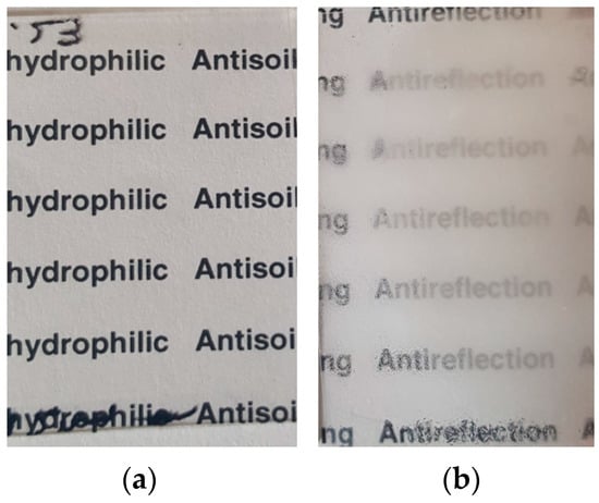 Antifogging results: (a) coated glass slide; (b) uncoated glass slide.
