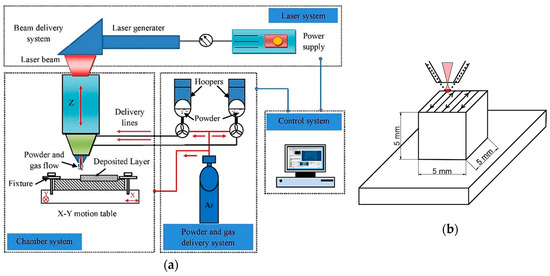 Laser engineered net shaping (LENS) is an additive manufacturing technology that is used to manufacture parts with enhanced property by melting a powder and depositing onto substrate with high energy laser beam [,,]. This technology has become an academic and industrial focus because of the exceptional physical property, high density, and low pore rate of the finished product [,].