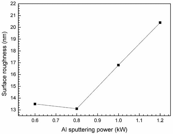 Surface roughness of the four CrAlSiN coatings deposited under different Al sputtering power.