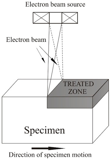 During the last decades, considerable attention has been paid to surface manufacturing of materials by high-energy fluxes (HEFs) (i.e., electron and laser beams). In these technologies, the electrons or photon fluxes interact with the surface of the sample, heat the treated area, and form a thermal distribution. The rate of heating and cooling can be characterized by quite high values (about 105–106 K/s), which lead to some structural changes in the functional properties [5,6,7,8,9,10]. The authors of [11] demonstrated an innovative approach for controlling the surface topography and tribological behavior of biomedical alloys, such as Ti6Al4V, by means of electron beam surface treatment. Other researchers [12,13] have successfully demonstrated the possibilities for enhancing the wear and corrosion properties of steel by the formation of carbon fiber-reinforced Ni-based composite coatings via laser cladding. Laser beam technologies have a large number of applications in the field of modern medicine and are extensively discussed in [10].