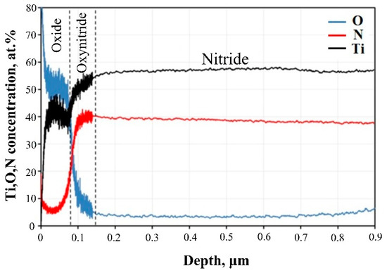 The depth profiles of Ti, N, and O were measured by glow discharge optical emission spectroscopy (GDOES, GDS-750 QDP, LECO Instruments, St. Joseph, MI, USA) under conventional plasma conditions.