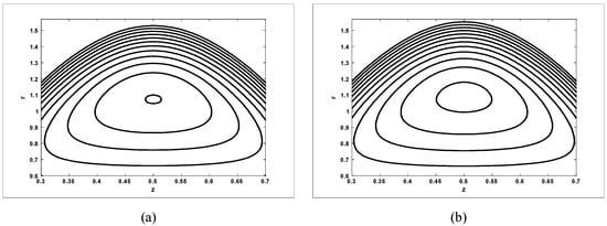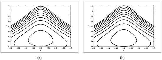 Streamlines for two different values of for (a) and (b) The other parameters are chosen as when