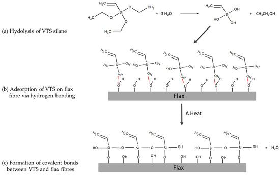 The formation of siloxane bridge between VTS treated flax and PP matrix.