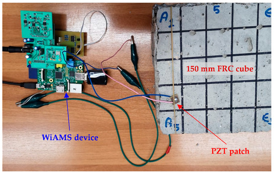 - Chalioris, C.E.; Providakis, C.P.; Favvata, M.J.; Papadopoulos, N.A.; Angeli, G.M.; Karayannis, C.G. Experimental application of a wireless earthquake damage monitoring system (WiAMS) using PZT transducers in reinforced concrete beams. WIT Trans. Built. Environ. 2015, 152, 233–243. [Google Scholar] [CrossRef] [Green Version]