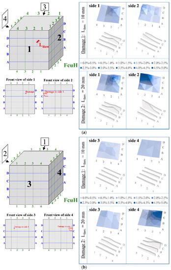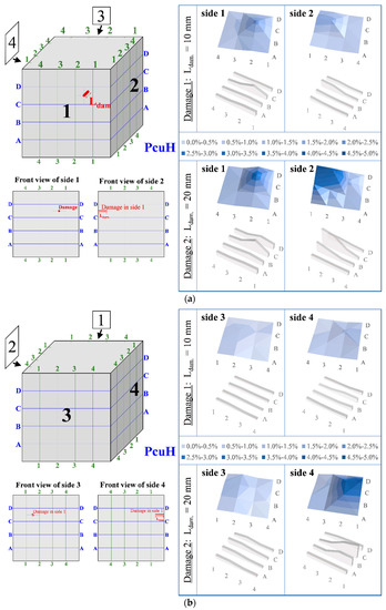 - The effectiveness of the SHM system used to identify the location and severity level of damage was first verified using PC and FRC cubes with predefined and artificially induced damage in the form of drilled holes at two different depths.
