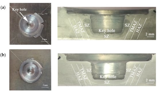 - Yang, X.W.; Fu, T.; Li, W.Y. Friction stir spot welding: A review on joint macro-and microstructure, property, and process modelling. Adv. Mater. Sci. Eng. 2014, 2014, 697170. [Google Scholar] [CrossRef]