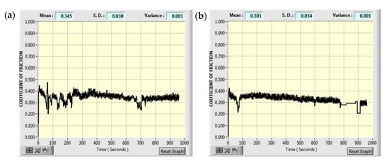 Evolution of the coefficients of friction: (a) AA5083/nano-SiC, and (b) AA5083/micro-SiC.