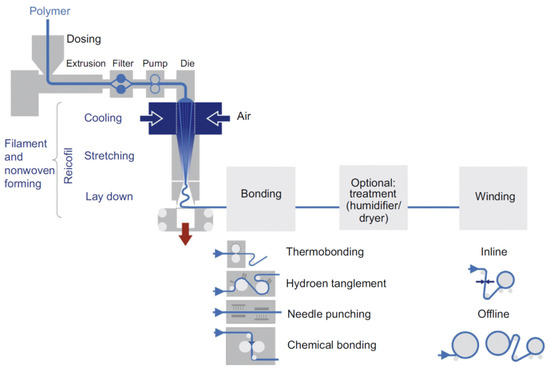 - Nonwovens Industry. Available online: https://www.nonwovens-industry.com/contents/view_features/2005-08-17/spunbonded--melt-blown-nonwovens/ (accessed on 14 July 2021).