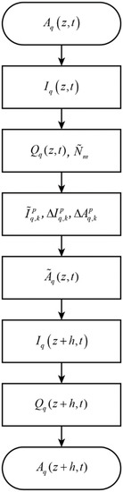 By using the SSFM, we assume the constancy of the intensities within the step along the length. Within the framework of the assumptions, this equation reduces to the advection equation, which has a solution [65]: