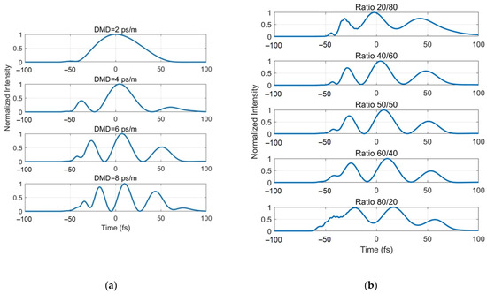 - Burdin, V.A.; Bourdine, A.V. Simulation of an ultrashort optical pulse propagation in a polarization-maintaining optical fiber. Appl. Photonics 2019, 6, 93–108. [Google Scholar]