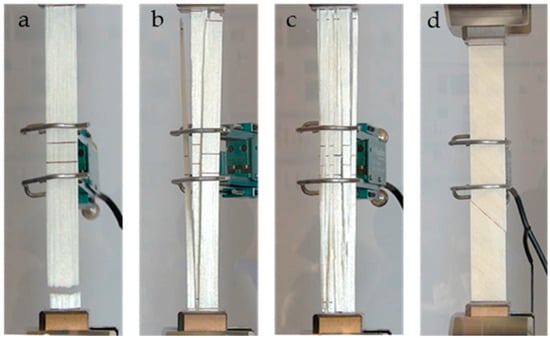 In general, sisal fibers, as well as UD sisal–epoxy composites, exhibit linear elastic behavior up to failure (Figure 5 and Figure 12). During the experiments on the composites, characteristic forms of failure were noted, a transverse crack path at low fiber-volume fractions and longitudinal cracks at high fiber-volume fractions. With that, the observed linearity of the load-bearing capacity of the fiber bundles does not represent the effective strength of the composite. Analyzing the average strengths of SFRC, at 20% and 40% the values increase in proportion to the fiber volume fraction, but at 60% the increase is noticeably lower (Figure 8). Presumably, at high fiber-volume fractions, a significant variation in sisal fiber diameters and strengths (which is less typical for synthetic fibers) causes shear stresses leading to matrix fracture and splitting along the fibers, and thus reducing the strength of the composite.