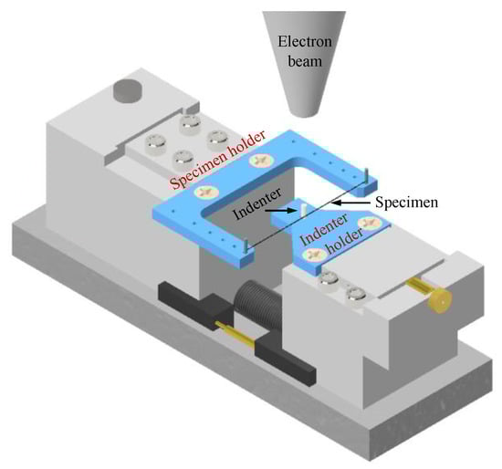 The entire Deben microtest tensile stage was installed within a chamber of a Quanta 3D FEG SEM (FEI, Hillsboro, OR, USA) so that the fiber’s real-time morphology during transverse loading could be captured by the secondary electron detector (SED) of the SEM. The cables of the Deben microtest tensile stage were extended to the outside of the chamber through a feed-through adapter and connected to a control box and further to a computer. During an experiment, the computer controlled the imaging and loading. A short scanning time was first adopted, which allowed for monitoring of the fiber’s morphology in a live mode, despite having a lower resolution. Simultaneously, a progressive loading scheme was employed in this study: when a critical failure characteristic was observed, the loading was temporally terminated, providing sufficient time for the SEM to scan the fiber specimen with more details and capture the fiber’s morphology at a high resolution. Moreover, the SEM was operated in a low-vacuum mode. The chamber pressure was controlled to be within 0.23–0.45 Torr. This allowed fibers to be imaged without conductive coatings and avoided the potential effect of coatings on the fibers’ mechanical responses. The accelerating voltage, working distance, and spot size were 5 kV, 10 mm, and 3.0–3.5, respectively. Each fiber type was examined with 3–5 specimens to guarantee the repeatability of the experiments.