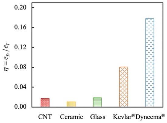 It is noted that the weight of textiles and composites is also a critical factor to be considered in practical engineering. In this study, we used the specific energy (etr) to evaluate the mass-efficient energy dissipation of different fibers. The calculation is made by
