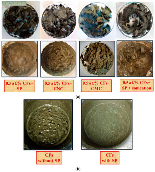 (a) Different wet dispersant and mixing methods of CFs and (b) dry mixing methods.