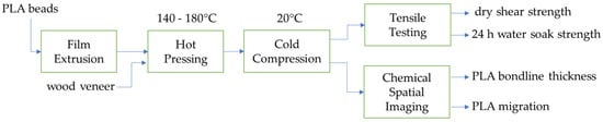 In this study, 5- and 7-ply PLA-radiata pine veneer laminates were prepared using a Siempelkamp laboratory press and three different platen temperatures of 140 °C, 160 °C, and 180 °C (Scheme 1).