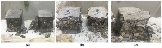 - six cube specimens (150 mm × 150 mm × 150 mm) for each concrete mixture. Three cubes were tested after 14 days, while another three cubes were tested after 28 days to obtain the compressive strength.