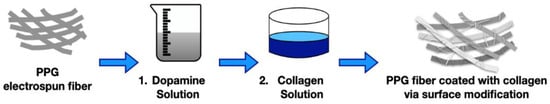 Schematic of the surface modification process in the coating of PPG with collagen.
