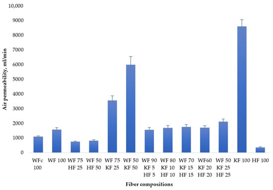 Air permeability of different fiber compositions.