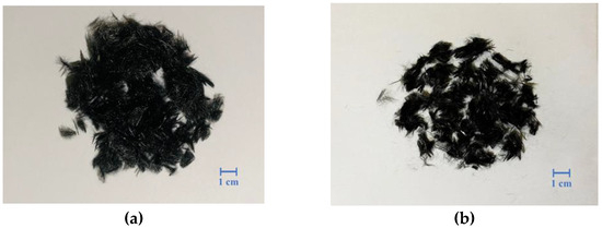 The heat treatment of carbon fiber: (a) Chopped carbon fiber; (b) carbon fiber after pneumatic dispersion.