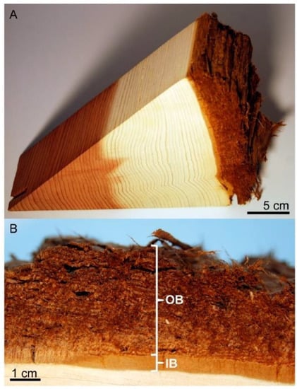 - Bold, G.; Langer, M.; Börnert, L.; Speck, T. The protective role of bark and bark fibers of the giant sequoia (Sequoiadendron giganteum) during high-energy impacts. Int. J. Mol. Sci. 2020, 21, 3355. [Google Scholar] [CrossRef]