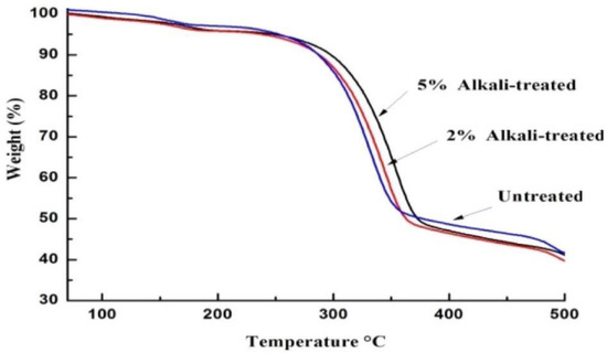 - Baskaran, P.G.; Kathiresan, M.; Pandiarajan, P. Effect of alkali-treatment on structural, thermal, tensile properties of dichrostachys cinerea bark fiber and its composites. J. Nat. Fibers 2022, 19, 433–449. [Google Scholar] [CrossRef]