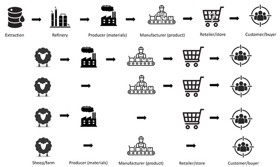 - Smith, T.; Ehrnström-Fuentes, M.; Hagolani-Albov, S.E.; Klepp, I.G.; Tobiasson, T.S. Rethinking the (Wool) Economy. In Local, Slow and Sustainable Fashion Fibres: Wool as a Fabric for Change; Klepp, I.G., Tobiasson, T.S., Eds.; Palgrave MacMillan: London, UK, 2022; pp. 133–170. [Google Scholar]