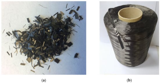 Different forms of carbon fibers. (a) Short carbon fibers [] and (b) long carbon fibers (roving) [].