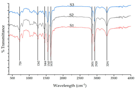 Generally, the FTIR spectra bands are associated with both crystalline and amorphous phases, where the crystalline phase is usually sharper when compared with the amorphous phase. The three-test samples—S1, S2, and S3—also confirm the same pattern of band observance.