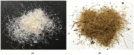 Coconut and sisal fibers were used as dispersed reinforcing fibers. The characteristics of the fibers are presented in Table 8, and their general view is in Figure 1.