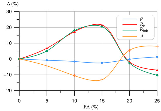 Changes in the characteristics of non-autoclaved aerated concrete in percent (∆) are shown in Figure 7.