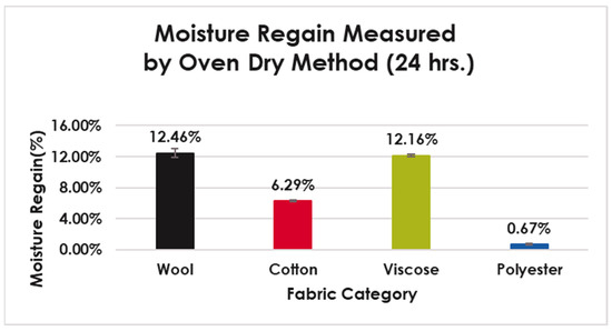 Moisture regain percentage measured by oven dry method (24 h).
