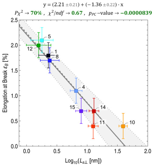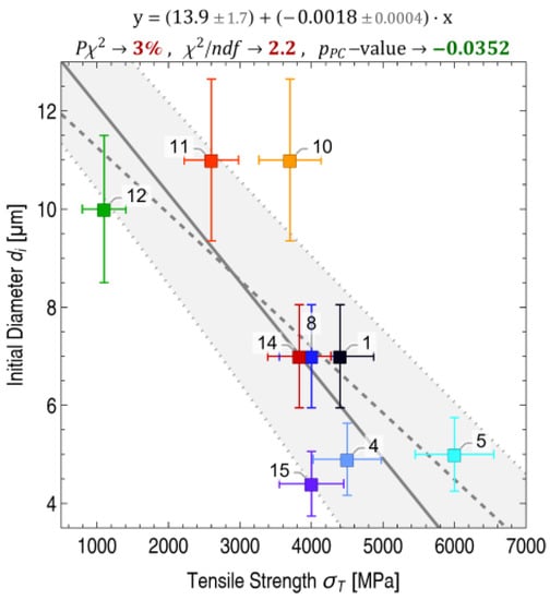 Many material properties can determine or correlate with specific aspects of the fracture behavior of a CF under mechanical failure. Relevant properties include tensile strength, tensile modulus, elongation at break, density, specific electrical resistance, thermal volume conductivity and crystallographic properties, such as lattice plane spacing (d002), crystallite sizes (Lc, La||, La⊥), degree of partial orientation (OP) and microporosity. To investigate such correlations, these properties were measured by experts or taken from the manufacturer’s specifications.
