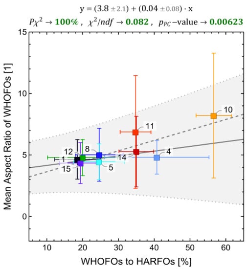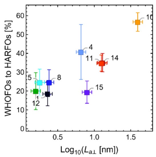 The data from these sets have been used to calculate observables to describe and study the fragmentation characteristics of the nine materials studied, including, e.g., the proportion of WHO-fibers in all high aspect ratio fragments, the ratio of fibrous to particulate fragments etc. Most of the following discussion will focus on such HARFSs, which result from disintegration pathways that lead to thinner fibrous objects, and especially on those fragments that exhibit WHO fiber dimensions.
