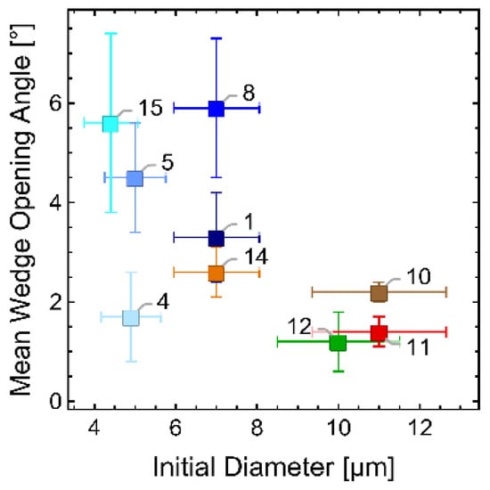 For the subsequent discussion, the percentage of wedge-shaped fragments with an opening angle greater than 10° is determined.