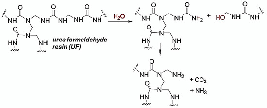 Hydrolysis of urea–formaldehyde resin [40].