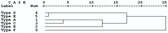 It should be said that all three fiber types at the temperature of 121 °C were clustered under the same category, illustrating somewhat similar effects of the temperature on the overall properties of the fibers produced. The two fiber types D and E were also clustered closely, showing the decisive impact of temperature on the properties of recycled fibers obtained.