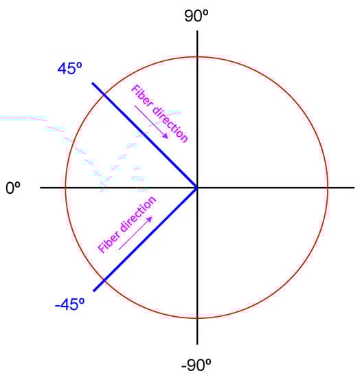 Schematical representation of two hypothetical measurements of fiber orientation in terms of angles at 45° and −45°.