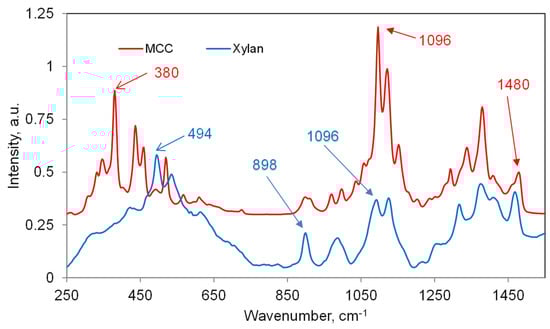 Raman spectra of MCC and xylan (250–1550 cm−1 region).