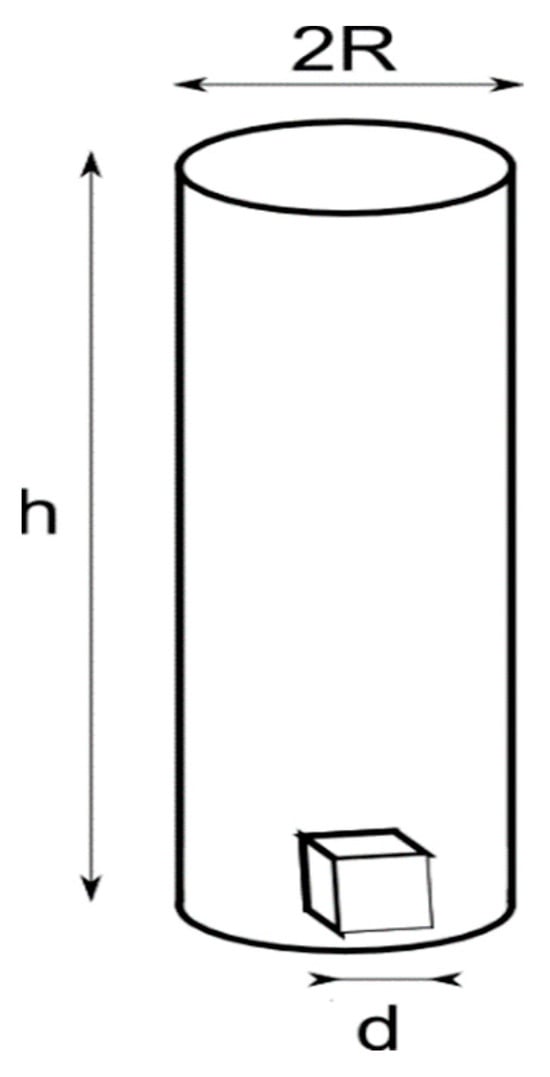 A simplified reaction mechanism, with the derivation of the integral kinetic equation that eventually makes it possible to determine some of the physical, chemical, and thermodynamic parameters, is developed. Assume the circular fiber has a length h [m] that is much greater than its radius R, h >> 2R (see Figure 3). Ideally, this fiber can be divided into very small cubic particles, with an edge size d [m] (see Figure 3).