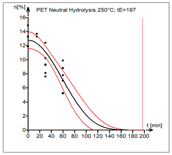 Kinetics of PET neutral hydrolysis, with the end time of the reaction tE = 197 min.